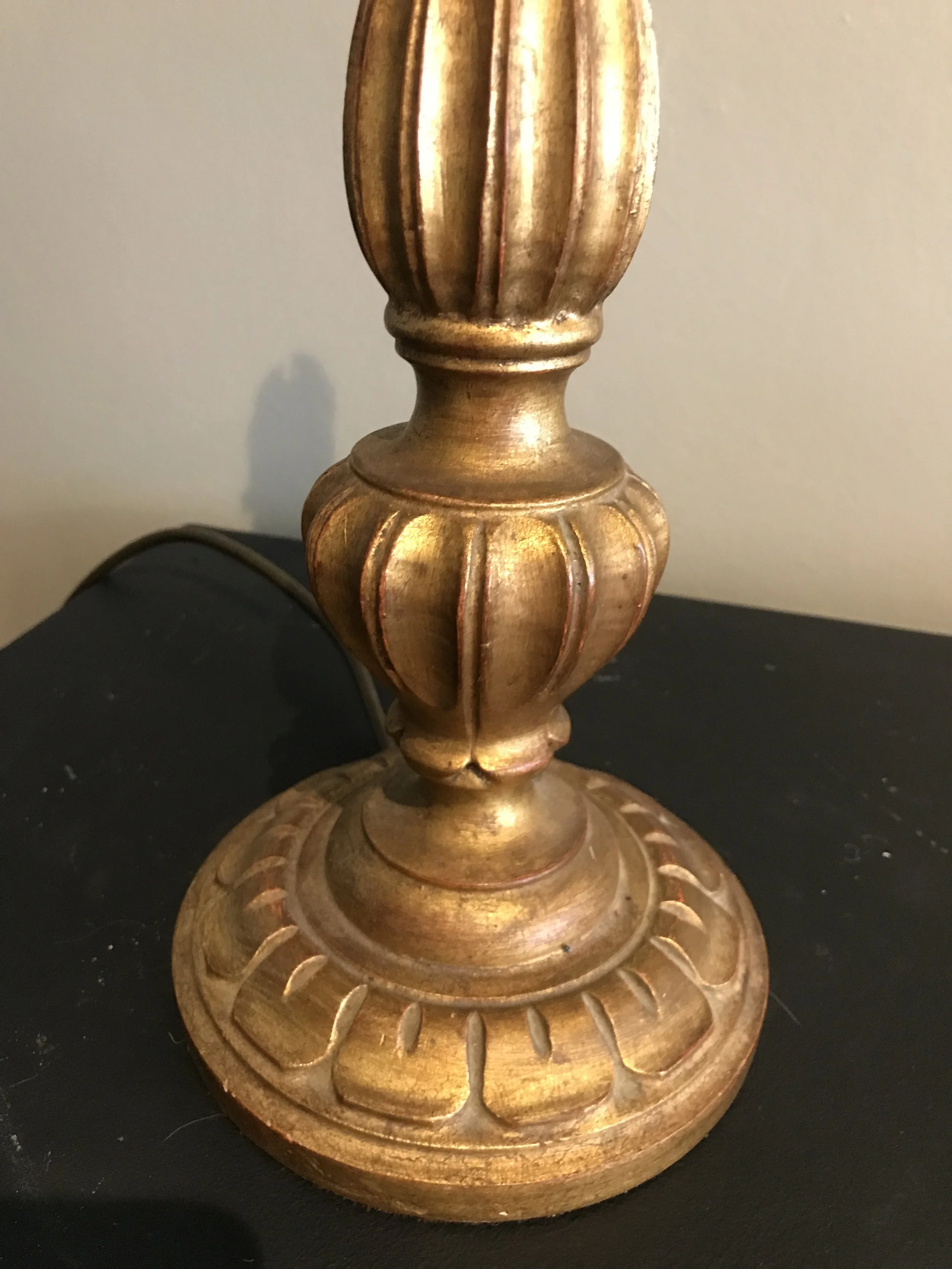 Carved wood lamp base with original gilding. £120.00