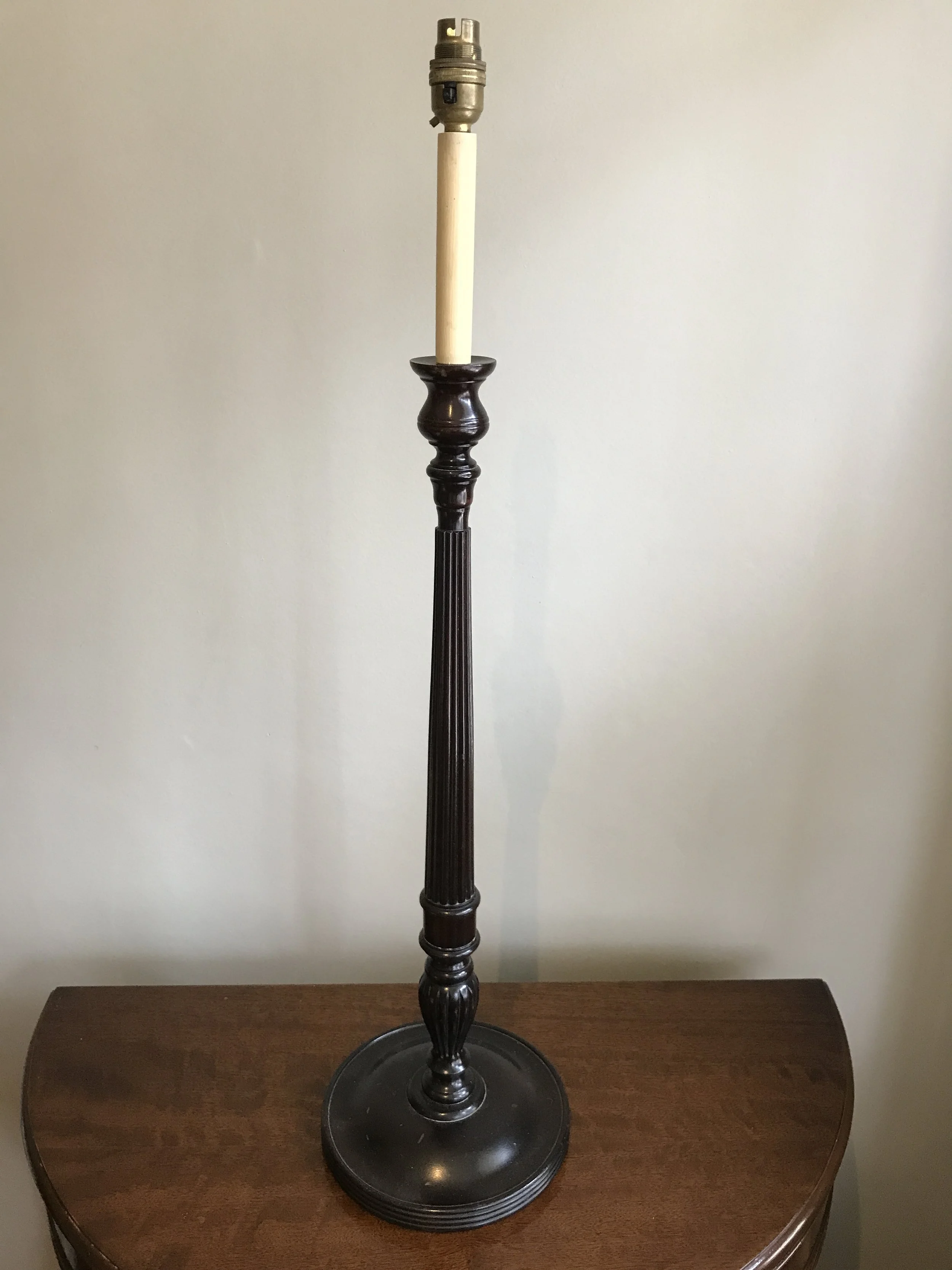 A tall turned mahogany lamp base. £135.00